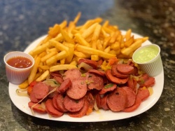 250g DE BATATA FRITA, 200g DE CALABRESA E CEBOLA.