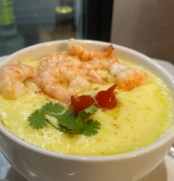 Creme de mandioca , camarão e mussarela.