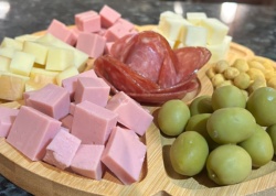 Salame , queijo , mussarela queijo parmesão , amendoim ,presunto ,azeitonas.